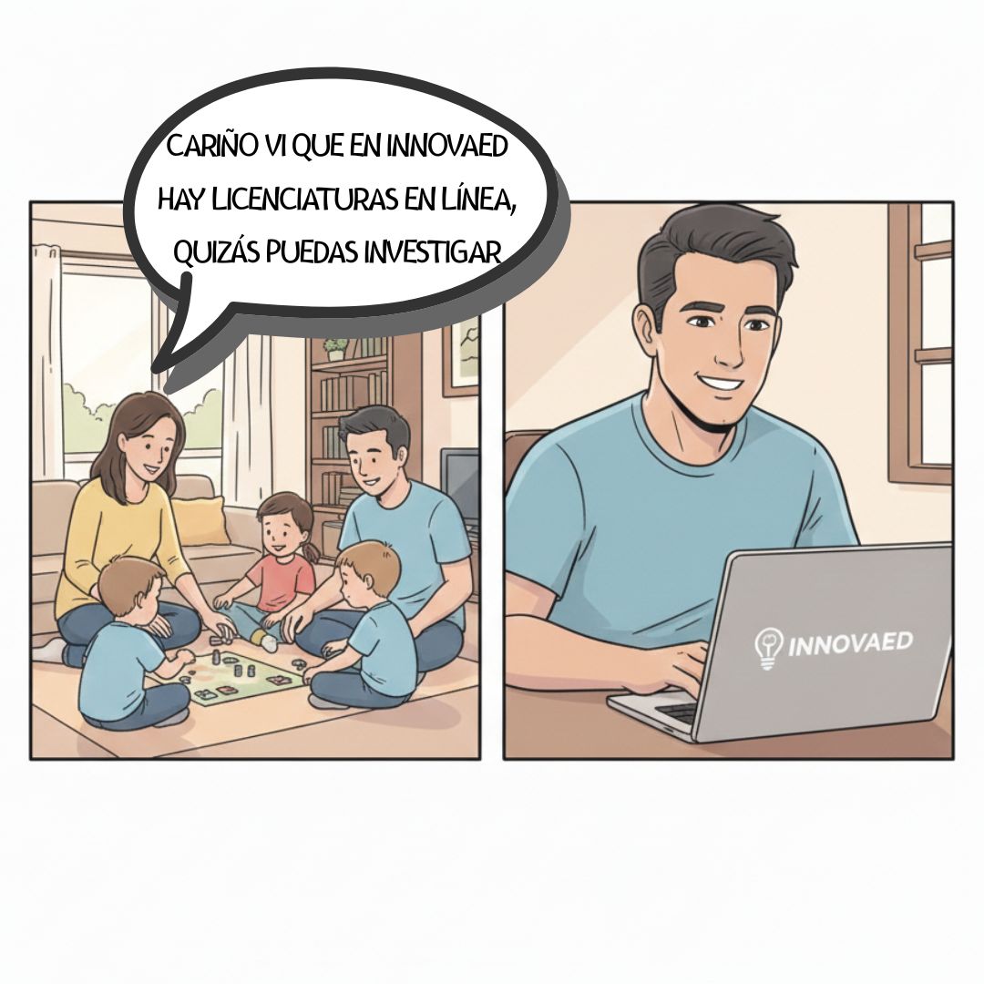 Rogelio trabajaba de 9 a 6 todos los días. Entre juntas, pendientes y responsabilidades familiares, estudiar una carrera universitaria parecía imposible. Pensaba que tendría que elegir entre su empleo y su formación. Hasta que conoció el modelo en línea de INNOVAED.