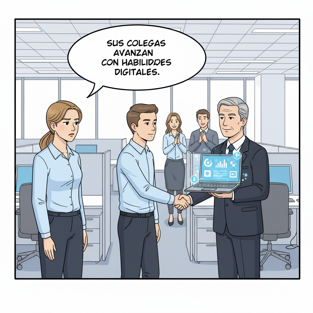 Lucía llevaba años trabajando en el área de ventas de una empresa mediana. Era responsable, cumplida y con resultados constantes, pero algo le faltaba: cada vez que se abría un puesto de mayor responsabilidad, alguien más se lo ganaba. ¿Por qué? La respuesta estaba en un detalle clave: sus colegas habían desarrollado competencias digitales que ella aún no dominaba.